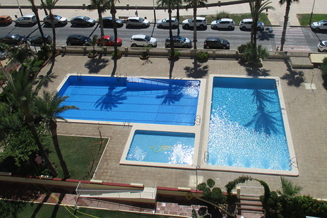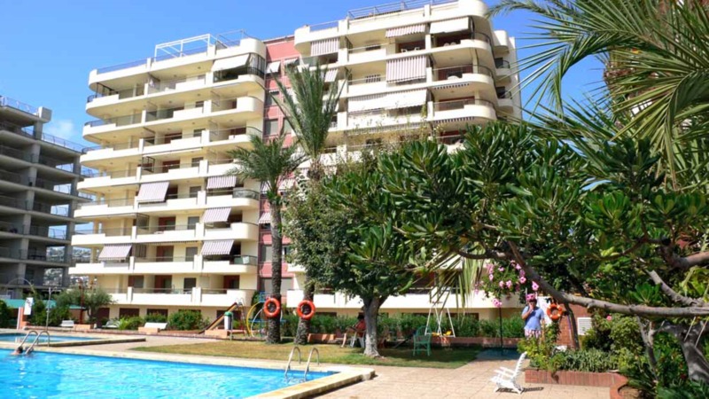 Situado en prímera línea de playa, complejo con piscinas, pistas de tenis y zona infantil.