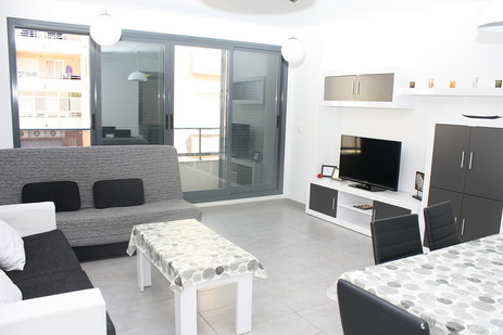 Piso de nueva construcción en alquiler vacacional. Situado a 50 metros de la playa en la zona de Llandells, cerca de supermercados, lago y parque infantil.